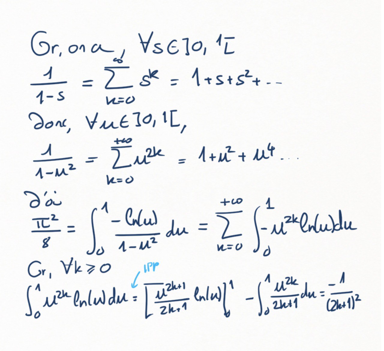 Puisque la série \(\sum \frac1{n^2}\) converge, on peut écrire: