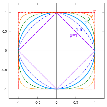Voici ce que ça donne pour les normes usuelles sur \(\mathbb R^2\text{:}\)